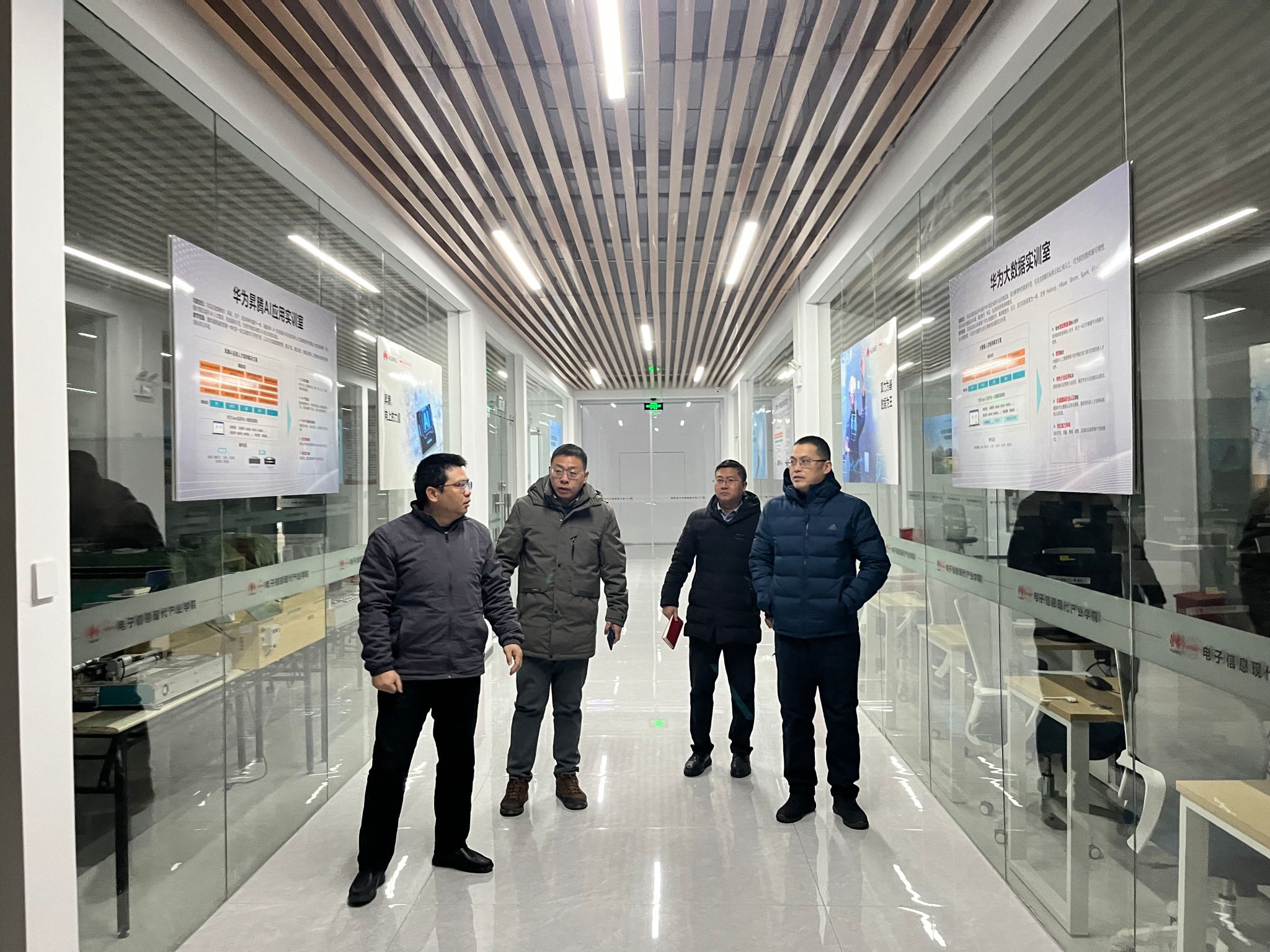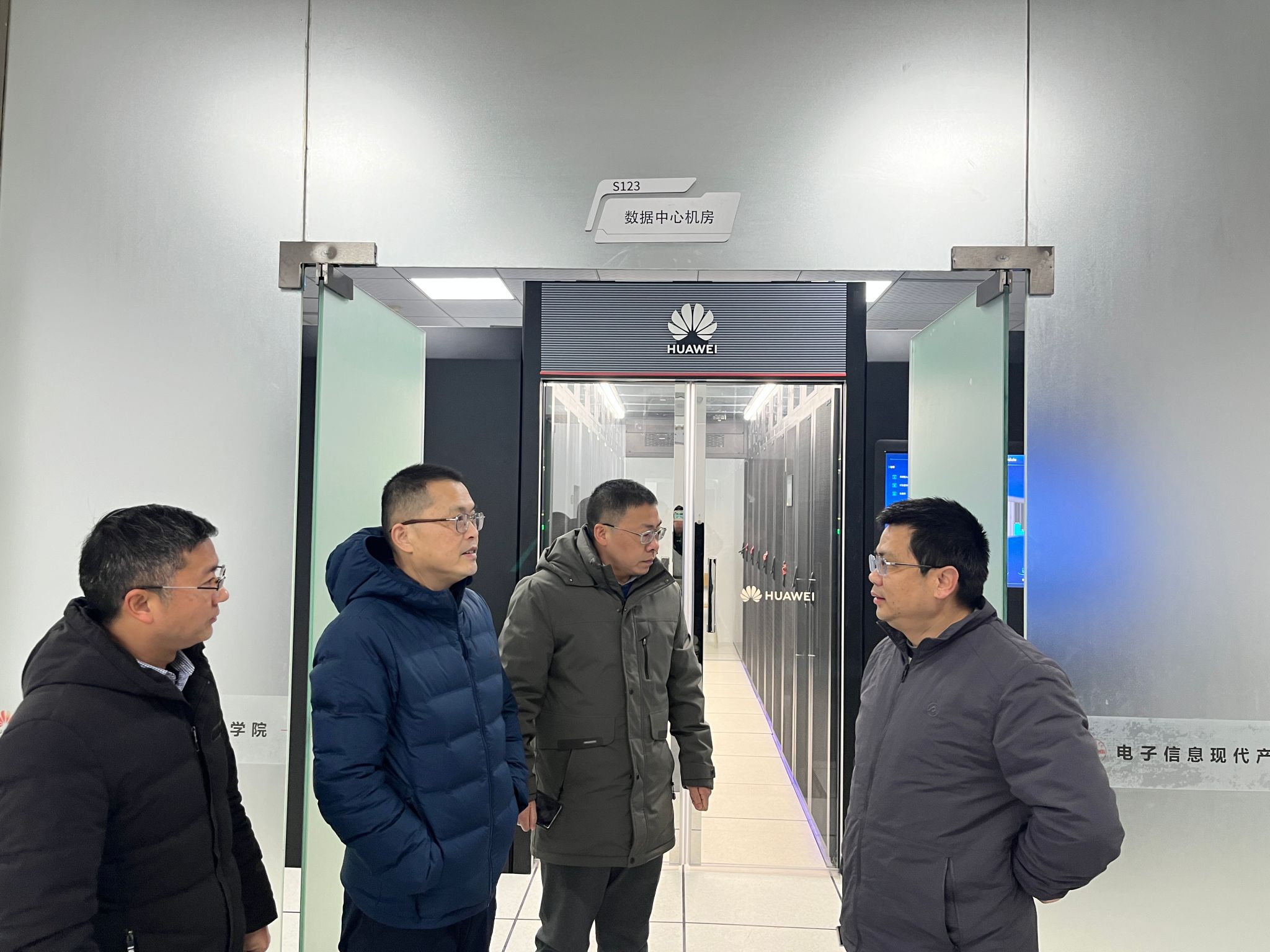 系领导班子一行人首先深入华为产业学院核心机房,对设备运行状况、UPS供电情况等方面进行仔细检查,加强机房安全管理,确保寒假期间机房设备的正常运转。