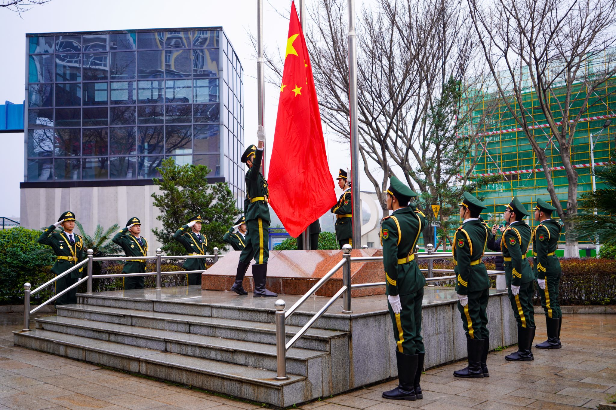 早晨7点30分,学校国旗护卫队的旗手们迈着矫健的步伐,护送着鲜艳的五星红旗入场。伴随着《义勇军进行曲》的响起,五星红旗冉冉升起,全体行注目礼、奏唱国歌,现场氛围庄严。