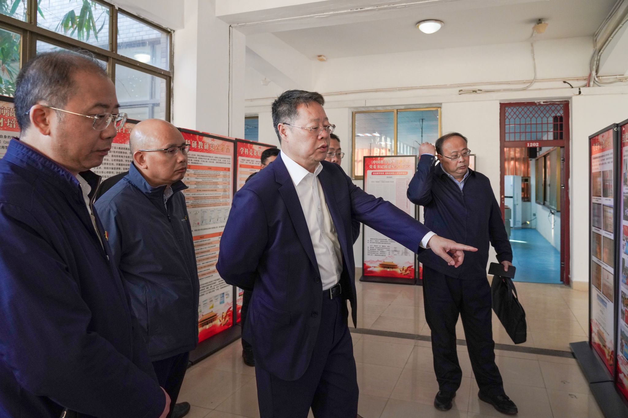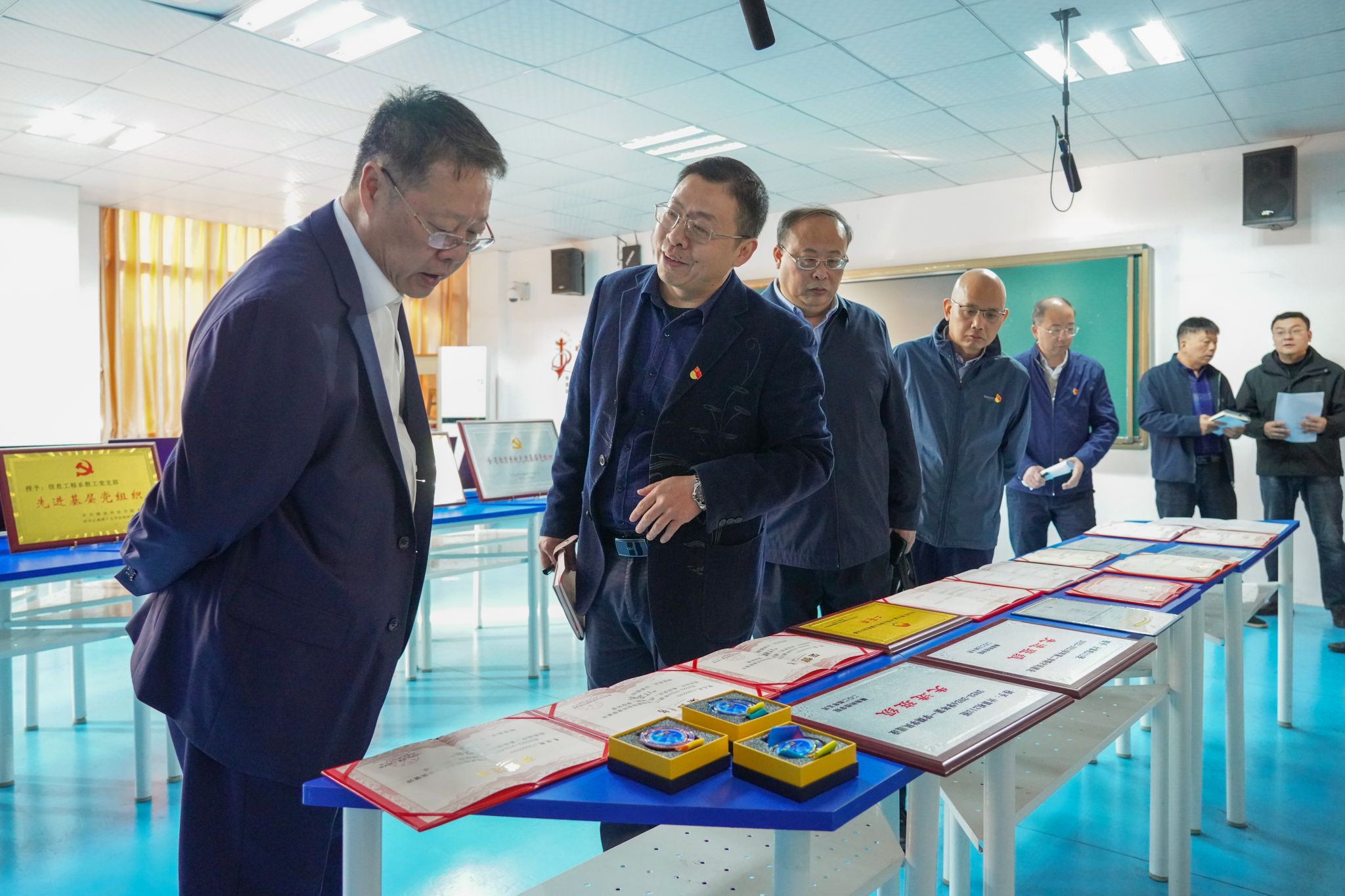 邱建军一行实地查看了304永利集团登录入口党建长廊成果展、荣誉展、党员活动室等党建工作建设情况。304永利集团登录入口党委副书记邓小鸿就学院围绕“全省党建工作标杆院系”建设所开展的各项工作进行了详细汇报,从党建工作机制完善、党组织建设成效、党建引领学科发展与人才培养、党建工作创新举措等多个方面,系统阐述了学院在标杆院系建设过程中的积极探索与实践成果。