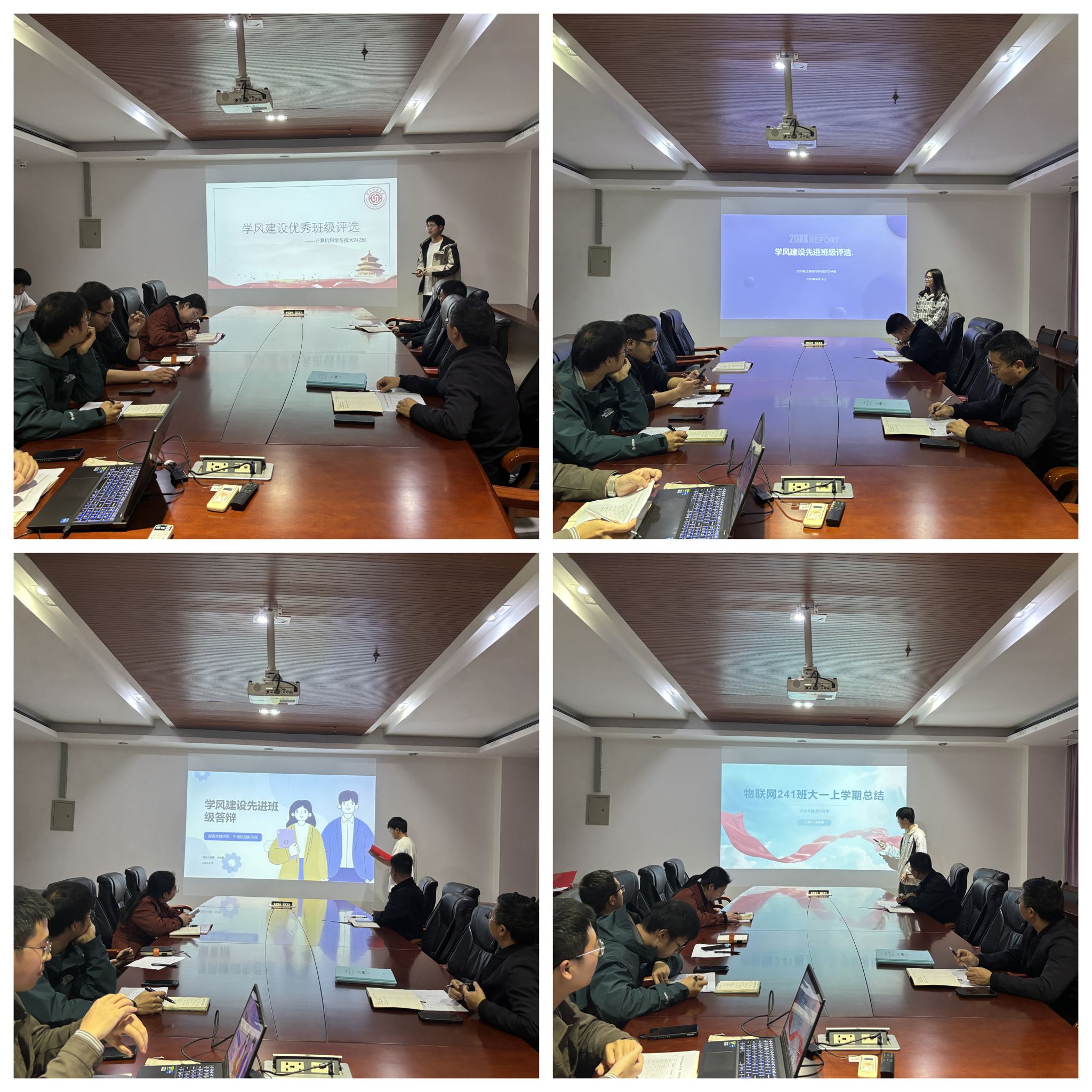答辩会上,各班级班长依次登台,围绕组织架构、日常管理、班风学风建设、班级成果及专业特色等方面进行了全面的汇报展示,最终经过激烈的角逐和评委们的综合评议,计算机212班、计算机224班、计算机243班、物联网241班和物联网242班等五个班级凭借扎实的学风建设成果和突出的表现脱颖而出,成为学院学风建设先进班级,拟推荐至学校参评。