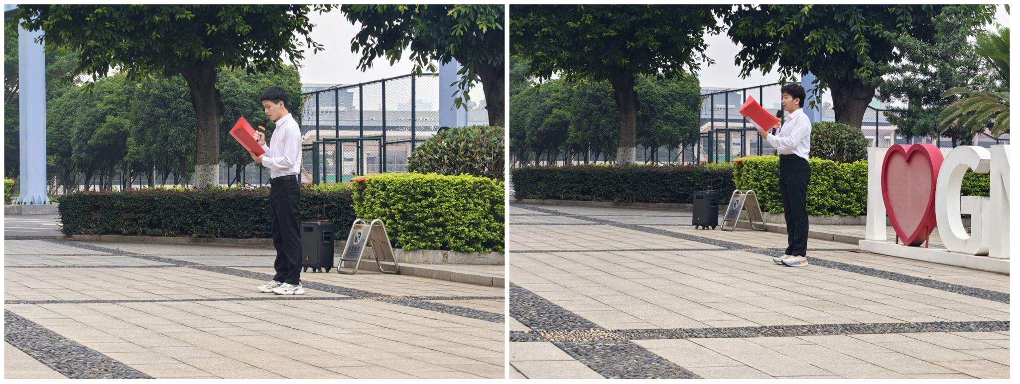 升旗仪式结束后,十佳大学生代表计算机212班孙森、通信212班桂强怀着满腔热忱,在五星红旗下深情演讲。他们结合自身成长经历,用朴实而真挚的语言讲述了在追梦路上不懈奋斗的点点滴滴。从实验室里挑灯夜战的身影,到赛场上百折不挠的坚持;从一次次失败中的自我重塑,到收获荣誉时的感恩回馈,他们的故事不仅是一段段青春奋斗的剪影,更折射出新时代青年勇担使命、砥砺前行的精神风貌。话语铿锵有力,情感真挚动人,现场掌声雷动,激励着每一位在场师生。