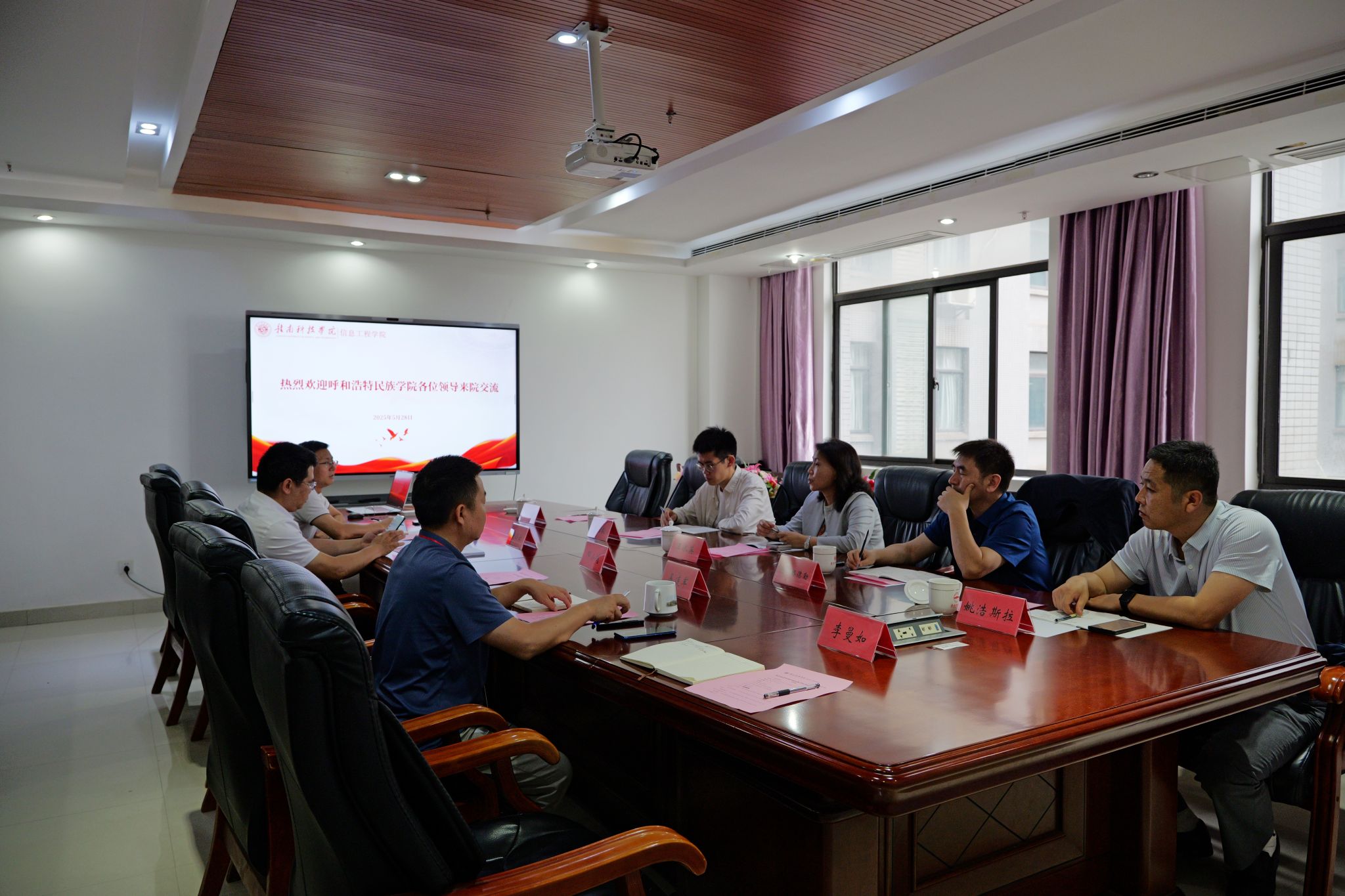 会上,魏炳辉对王水英一行的到来表示热烈欢迎和感谢,他表示,两校作为地方特色高校,肩负地区人才培养使命,在培养服务地区人才、推进民族团结进步教育方面责任重大。随后,易连军简要介绍了学院的办学定位、学科设置、人才培养、科学研究等方面的基本情况,谢小云介绍了学院在产学研融合方面的经验做法。呼和浩特民族学院也分享了本校近年来在民族学生培养、多民族师生融合发展等方面的实践探索,实践经验与思考。双方围绕学科建设、人才培养模式创新、产学研合作、硕士点申报、民族统战等话题展开热烈讨论、交换意见。大家一致表示,希望两校进一步加强互动,整合优势资源,携手提升教育教学质量,为培养高素质专业人才贡献力量。