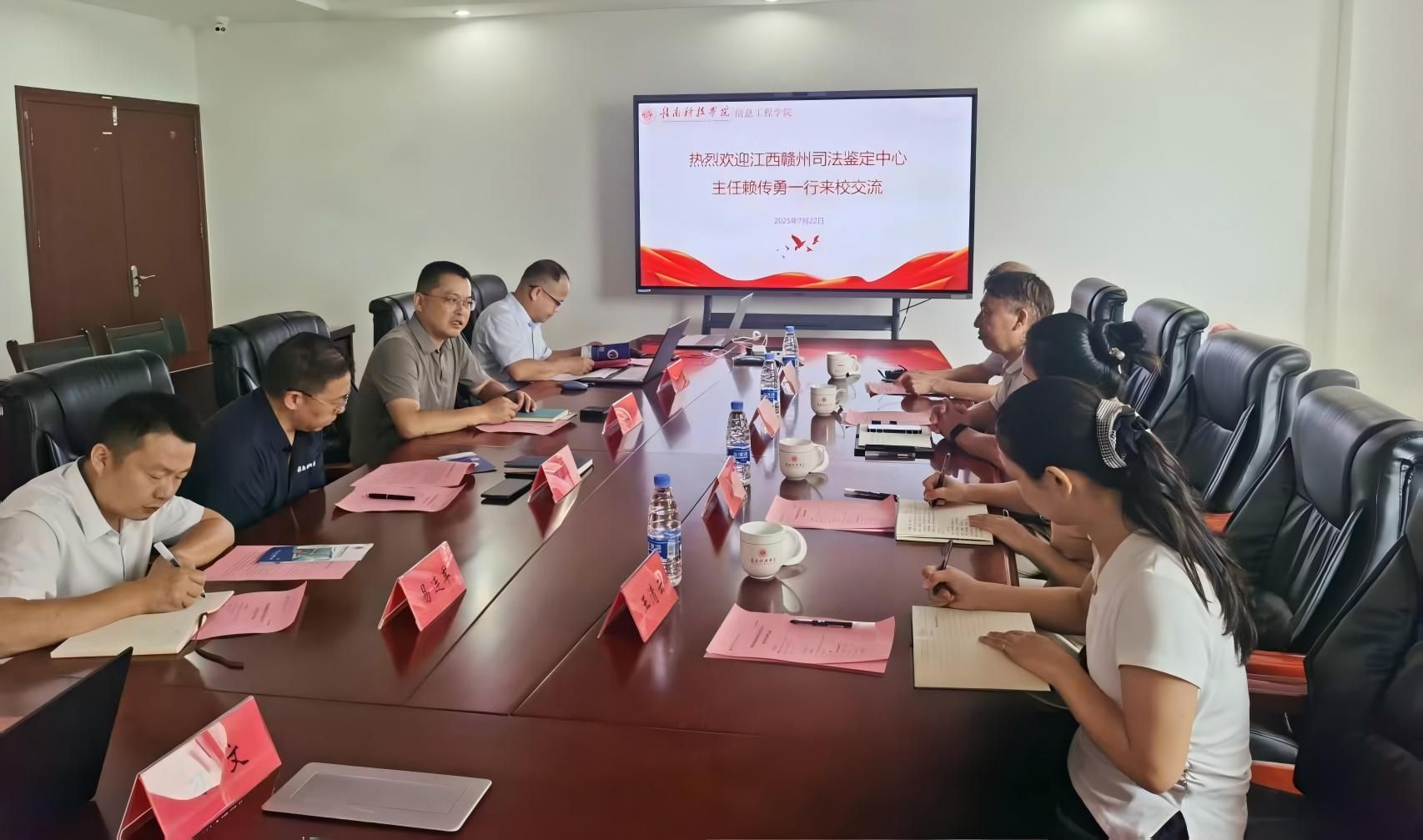 邓小鸿对赖传勇一行表示热烈欢迎,对赣州司法鉴定中心专业的鉴定队伍、扎实的技术力量以及优质服务给予高度评价。胡健详细介绍了我校在网络空间安全、人工智能、大数据技术、法学等交叉学科的融合优势及目前在电子数据取证、深度伪造检测、区块链存证等领域的坚实技术基础。当前,学校已拥有电子数据存在性、电子数据相似性、电子数据功能性、电子邮件真实性等4项鉴定能力资质,并通过了中国合格评定国家认可委员会(CNAS)认证。