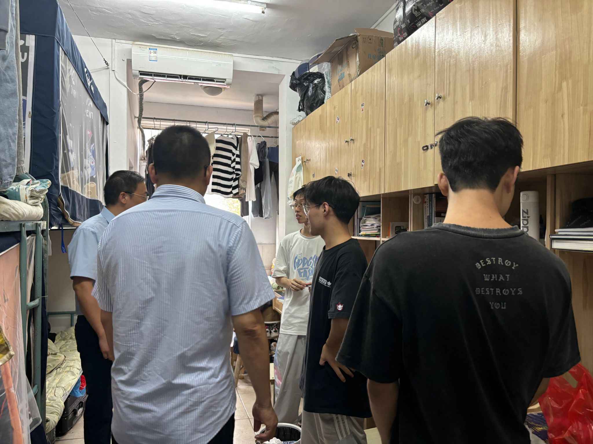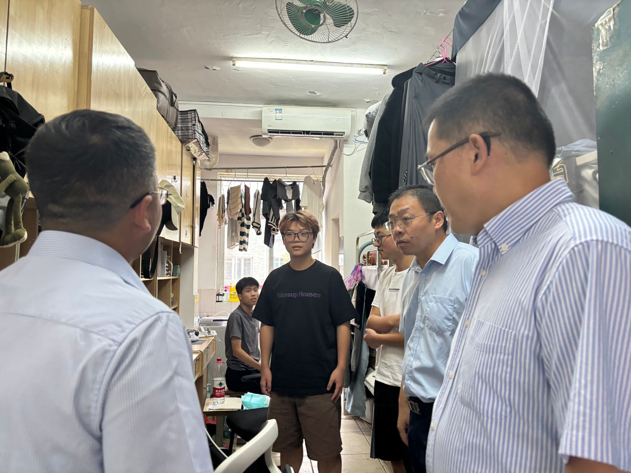 贴心下寝,情暖宿舍。9月1日下午,学院党委副书记邓小鸿、副院长胡健、学生工作负责人魏炳辉深入学生宿舍,看望返校学生,了解新学期学生学习和生活状态。学院领导与学生亲切交流,询问暑期生活情况和新学期学习规划,提醒同学们注意用电安全,校园消防安全,防范电信网络诈骗,有困难及时向辅导员老师反馈,共同营造温馨、和谐、安全的宿舍环境。