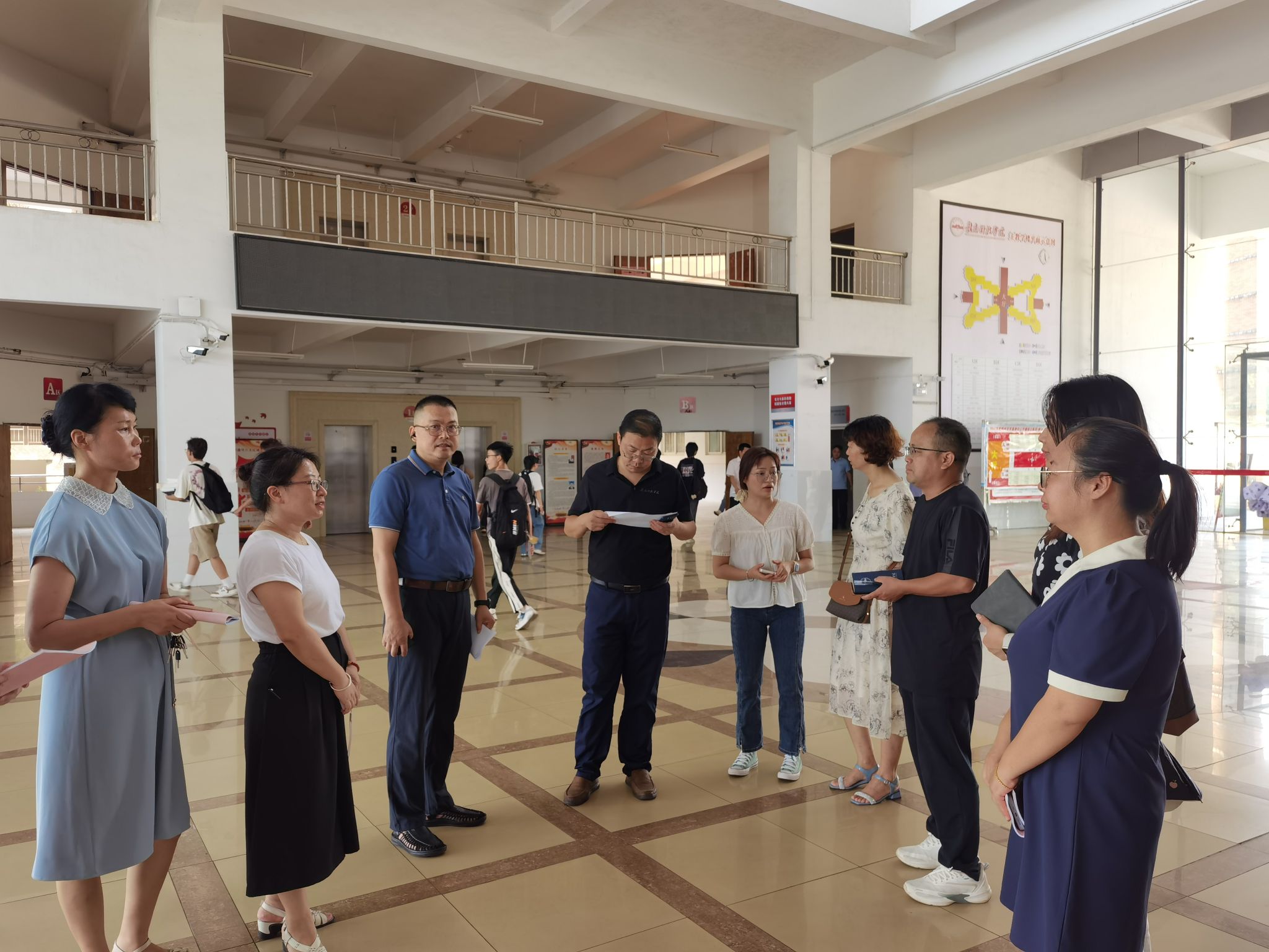 首日巡课,抓实学风。9月2日开学第一天,学院党委副书记邓小鸿、副院长胡健一行分别前往各教室进行现场巡查,对教师到岗、学生出勤、师生精神面貌、课堂秩序、课堂效果、设施保障及设备运行等情况进行了细致入微的检查。巡查情况良好,授课教师们均提前到岗,备课充分,展现出良好的教学风貌;学生们也按时出勤,课堂氛围活跃,展现出了新学期的新气象。同时,教学环境干净整洁,教学服务保障到位。巡查过程中,学院领导强调,新学期是充满希望与挑战的开始,任课教师们要继续保持高度的责任感和使命感,扎实做好教育教学工作,确保教学质量稳步提升。