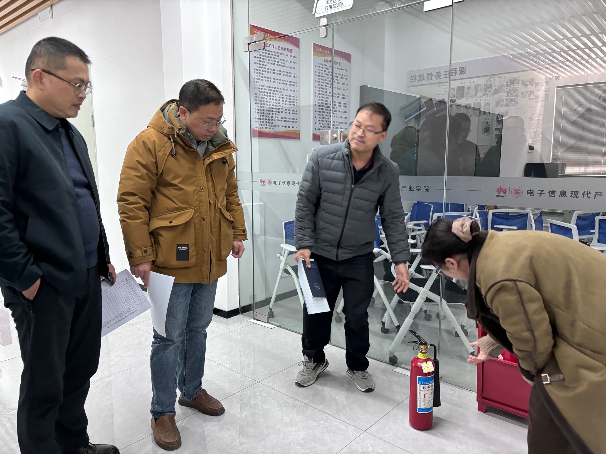 检查小组通过实地走访查看,对教学、科研实验室警示标识悬挂、仪器设备运行情况、管理工作日志等6个方面开展详细检查。重点检查消防设施配备与运行情况,查看灭火器的压力是否正常、是否在有效期内,消防栓的阀门能否灵活开启、水带是否完好无损且摆放规范,确保这些关键时刻能派上用场的 “救命设备”随时处于最佳状态。
