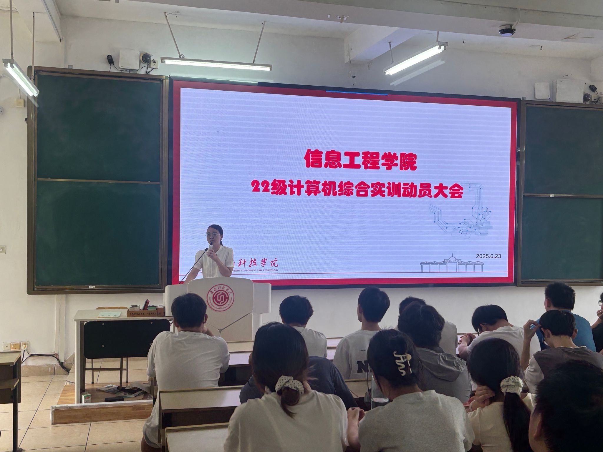 最后,各专业教研室主任向学生强调了实训考核重点,要求学生们关注问题解决能力、团队协作水平及创新成果,严格遵守实训纪律,珍惜学习机会。同学们态度端正,精神饱满,认真聆听实习工作安排布置。