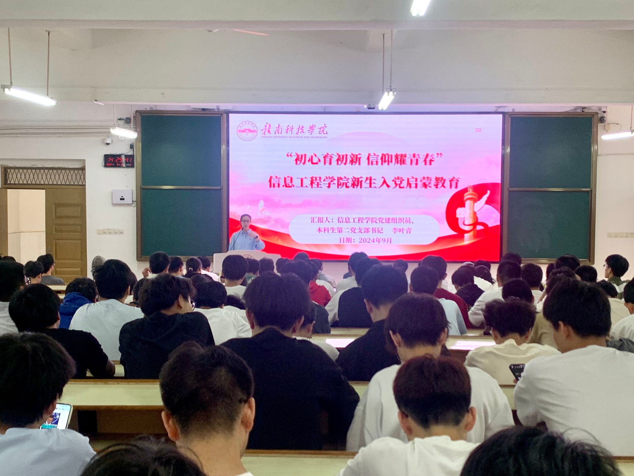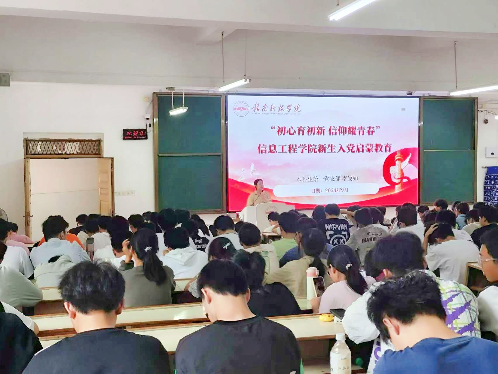 本网讯:为提高新生对党的认识,帮助新生树立知党、信党、入党的理念,引导新生积极向党组织靠拢,9月24日下午,304永利集团登录入口在崇善楼Z1D3、Z1D4教室开展新生入党启蒙教育,本次启蒙教育主讲人为304永利集团登录入口本科生第一党支部书记李曼如,304永利集团登录入口党建组织员、本科生第二党支部书记李叶青。