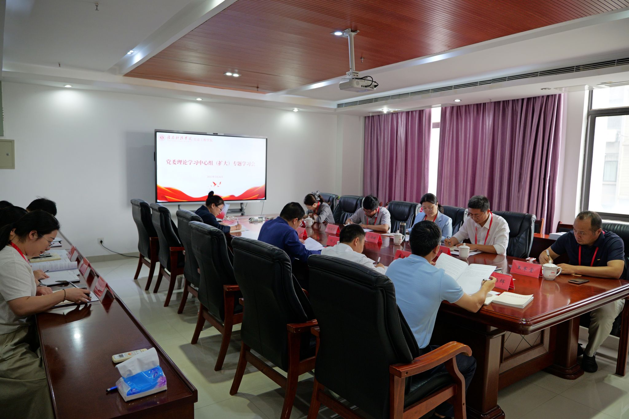 本网讯:5月26日,304永利集团登录入口召开党委理论学习中心组(扩大)专题学习会,文法学院党委莅会指导。信息学院党委班子成员出席会议,党支部书记列席参加。