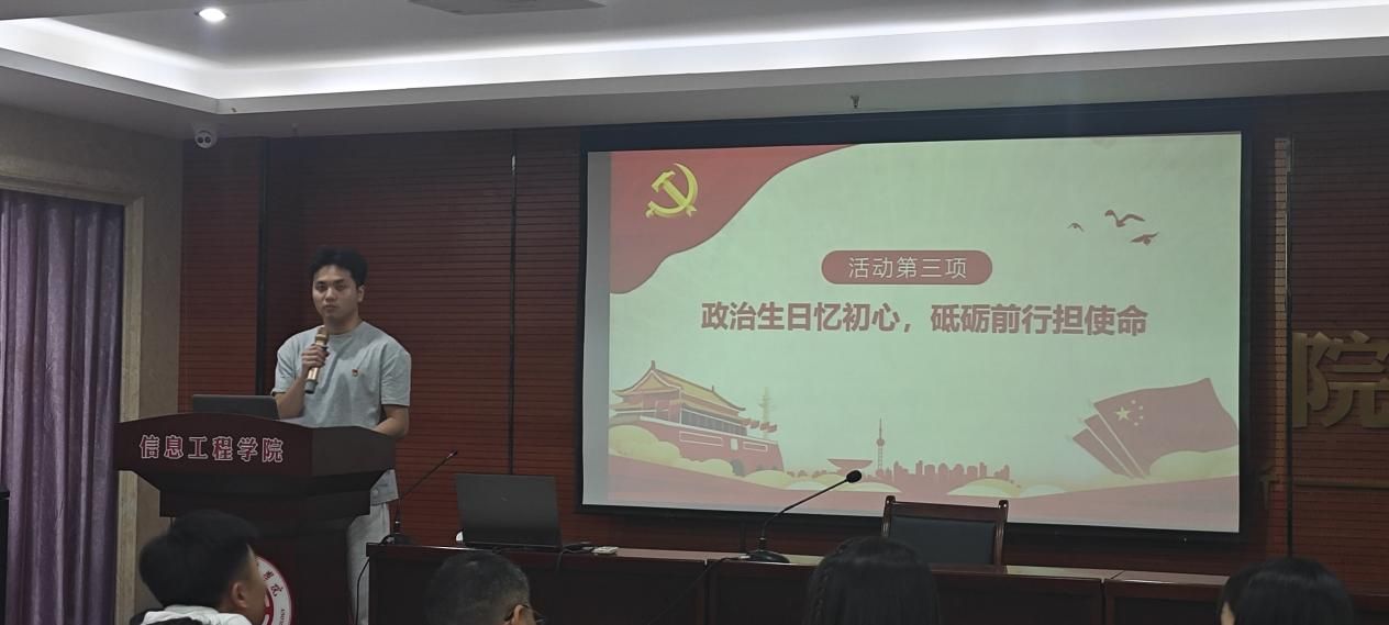 活动中,学院党委为毕业生党员们过了一场集体的“政治生日”。在“政治生日忆初心,砥砺前行担使命”分享环节,康俊豪、周泰、田磊、郑朝明四位优秀毕业生党员代表讲述了自己的校园成长历程。同时,学院为过政治生日的党员同志们颁发了定制的“政治生日纪念卡”,这些纪念卡,承载着党组织对党员的深切关怀,也提醒着青年党员们不忘初心、牢记使命。
